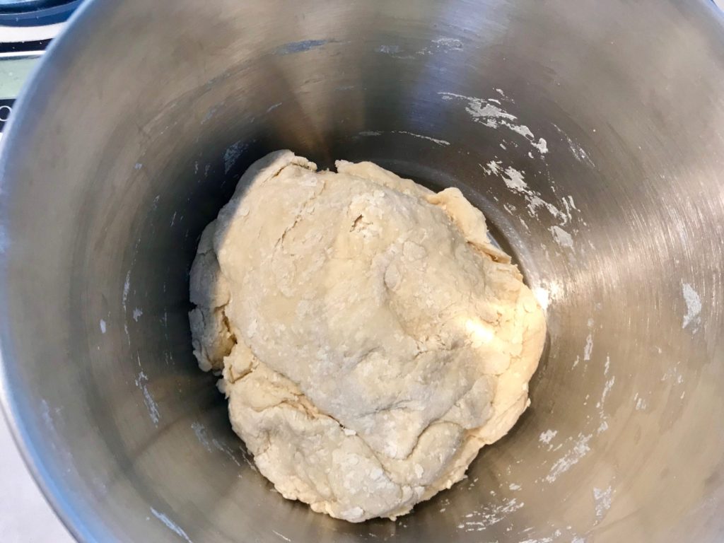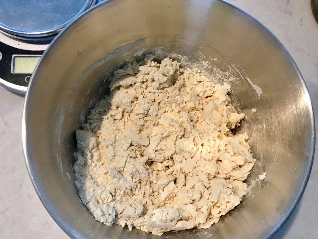 - Start kneading flour, goal is to make it into a dough, even it’s very very dry and cracked. I found it helpful to scoop the last bit of flour that seems too dry to blend in on top of the dough and press down forcing them to knead in.