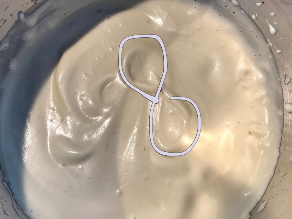 - Use mixer to mix till 3 times of original size, draw a 8 which does not disappear right away.