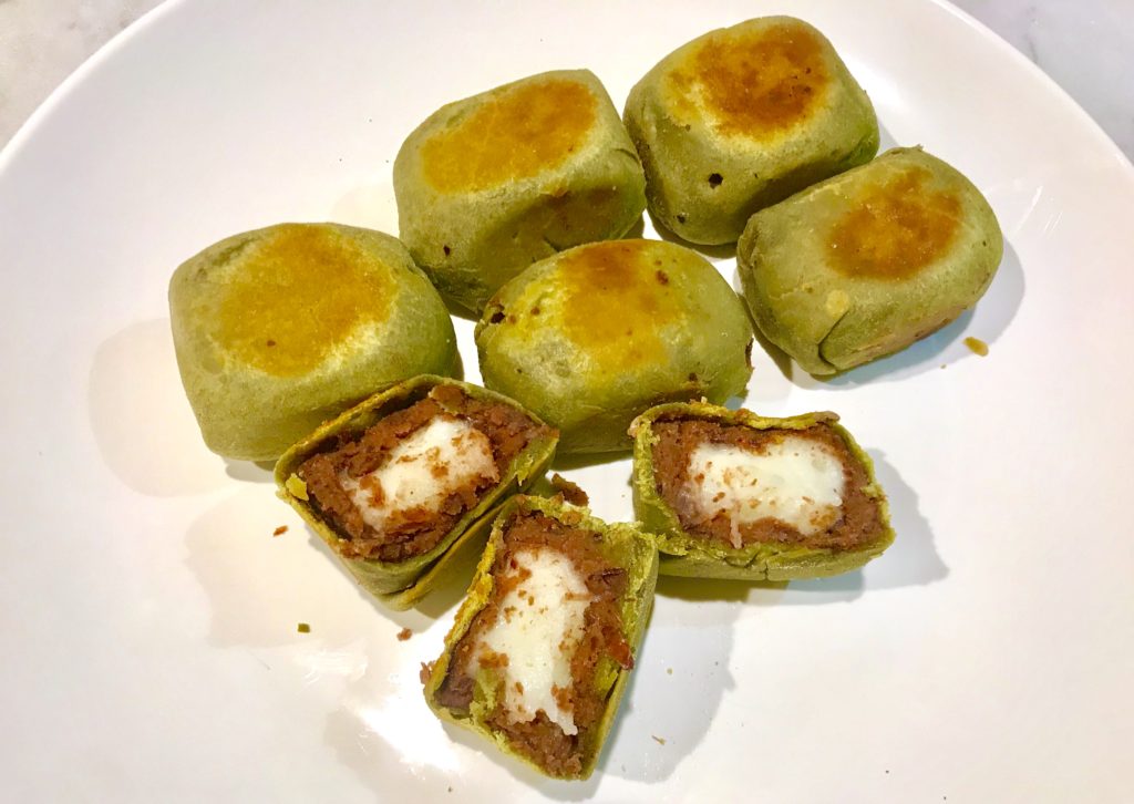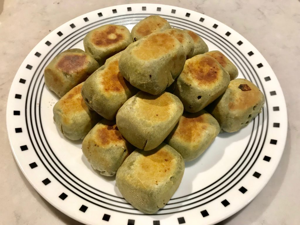 During quarantine, I saw a few videos that make XianDou Cake 仙豆糕 with innovative flavor — purple yam and cheese. The purple and gold color combination attracted my attention and I want to recreate it! I wasn’t able to get Japanese sweet yam which always yields glazing purple color, so I substitute with sweet potato. Since sweet potato has natural sugar, I decrease the sugar amount recipe calls for. Matcha and red bean are both frequently used in Japanese pastry, so I combine them along with mochi following this recipe (in Chinese).