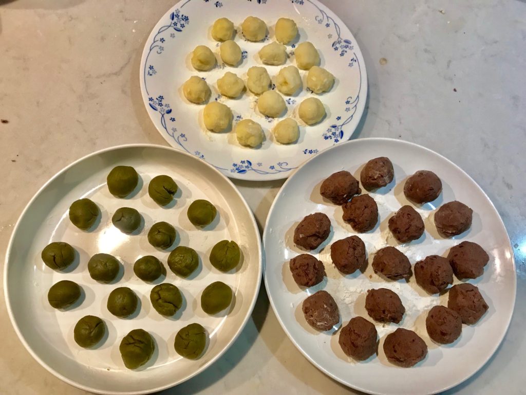 - mochi/sweet rice flour is extremely sticky after steaming, need to quick stir for 1+ mins after steaming, convenient for handling afterwards
