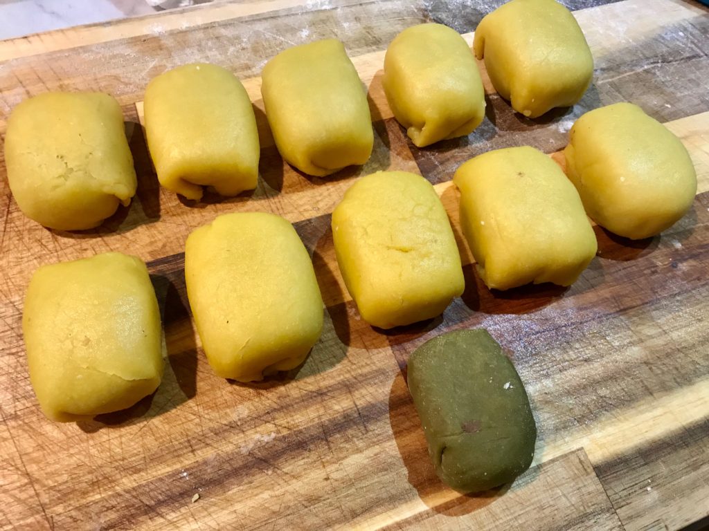 Comment: Personally prefer sweet potato cheese’ outer layer texture because it’s more moist. But the other outer layer dryness could potentially because I divide the dough into too many pieces and rolled them too thin. Comparing recipe’s photo to my final cake, mine was too thin and not moist. So I will follow recipe for matcha outer layer and update!