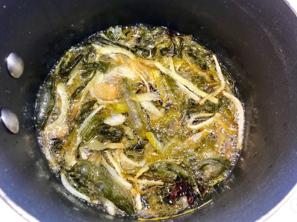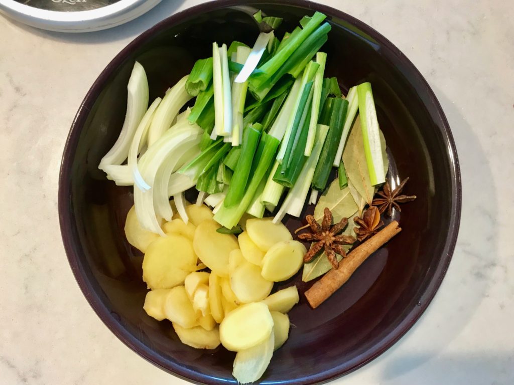 - CAREFUL! green onion, ginger and onion still have water and might splash oil