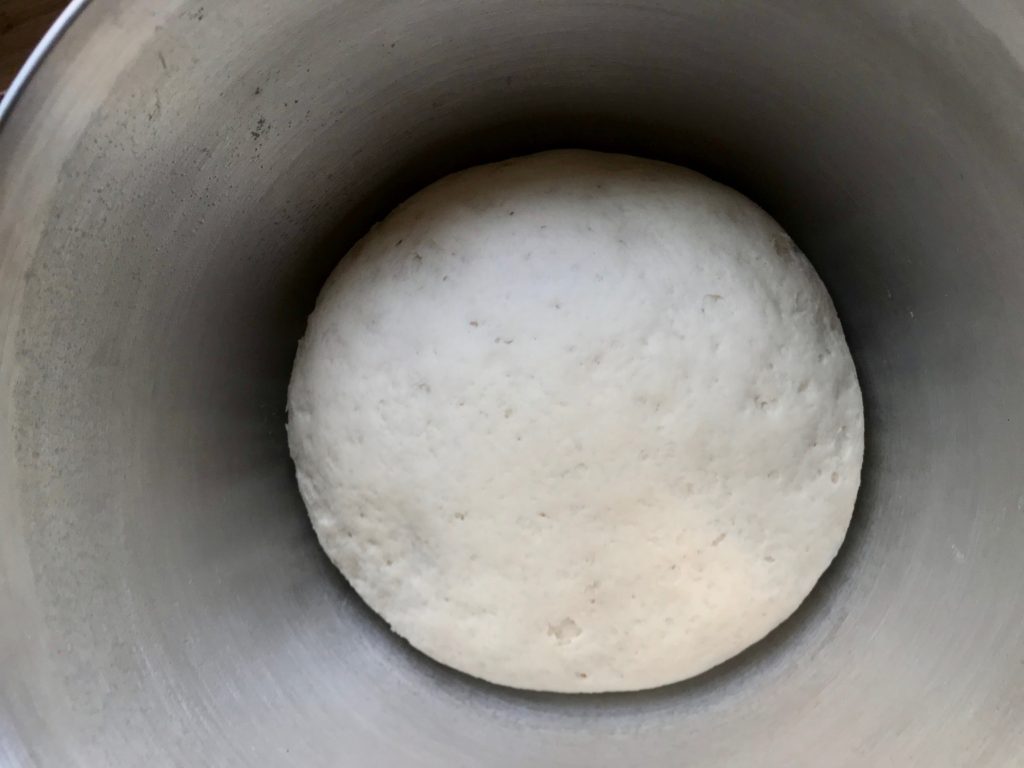 Step 2: Add yeast water into 250g flour in 3 separate time and form dough