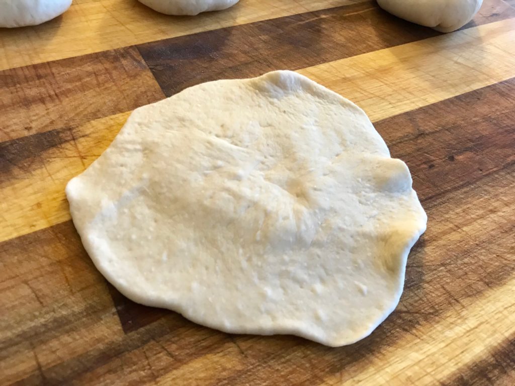 Step 7: Roll dough out, flatten the edge so the center is thicker, the edge is thinner