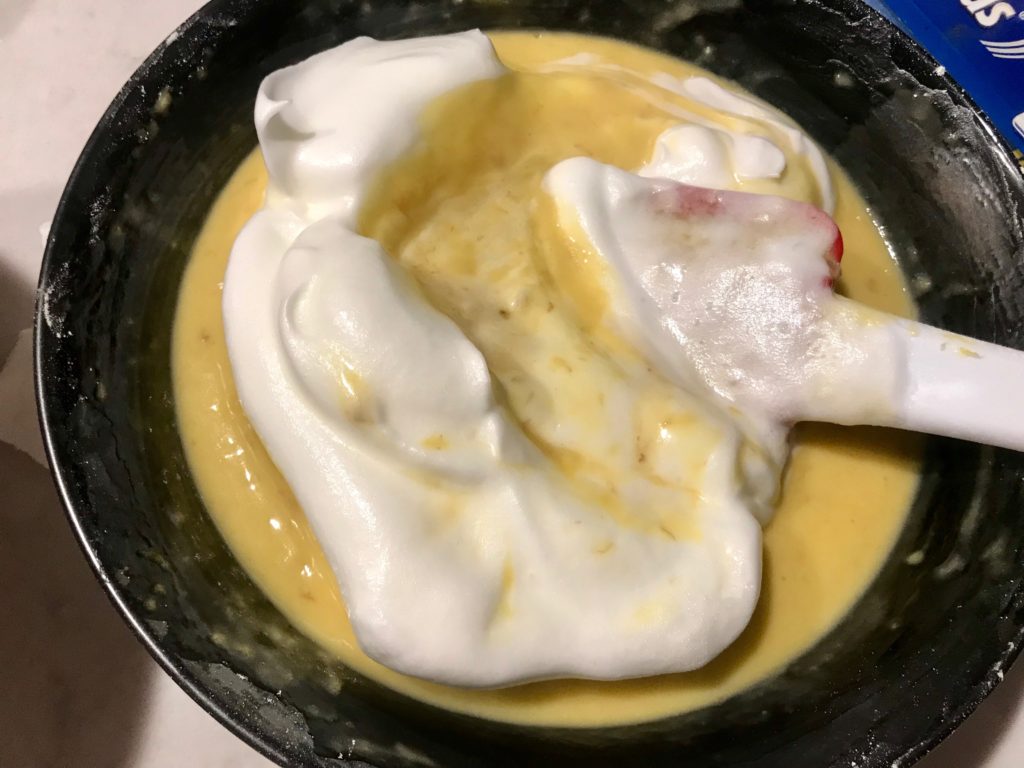 Step 5: Mix 1/3 egg white into cake mix, put them back into the leftover 2/3 egg white, mix well