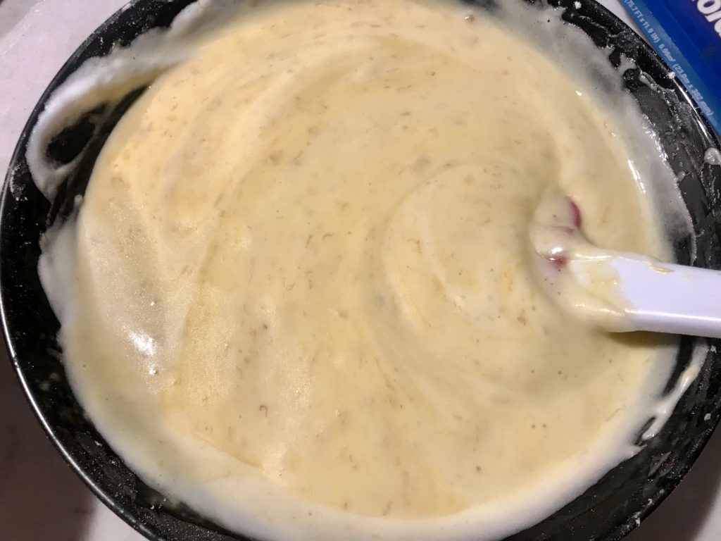 I had a few bananas left and have been using them for dessert throughout the week. Made banana chiffon cake this time~ It’s my first time making chiffon cake and used a wet ingredient banana on top of normal chiffon cake ingredients. Cake was very soft and fluff, but inside was more wet than I expected and not as spongy. I summarized a few points that might lead to such results here: