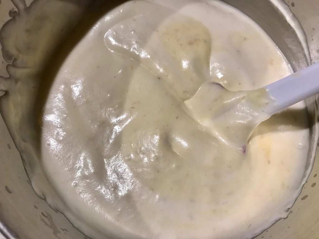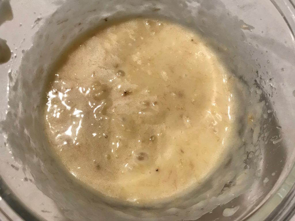 • smash banana; I had 123g banana, so I adjusted oil and egg accordingly, noted as below