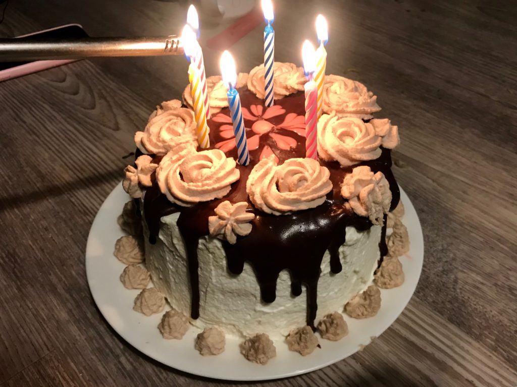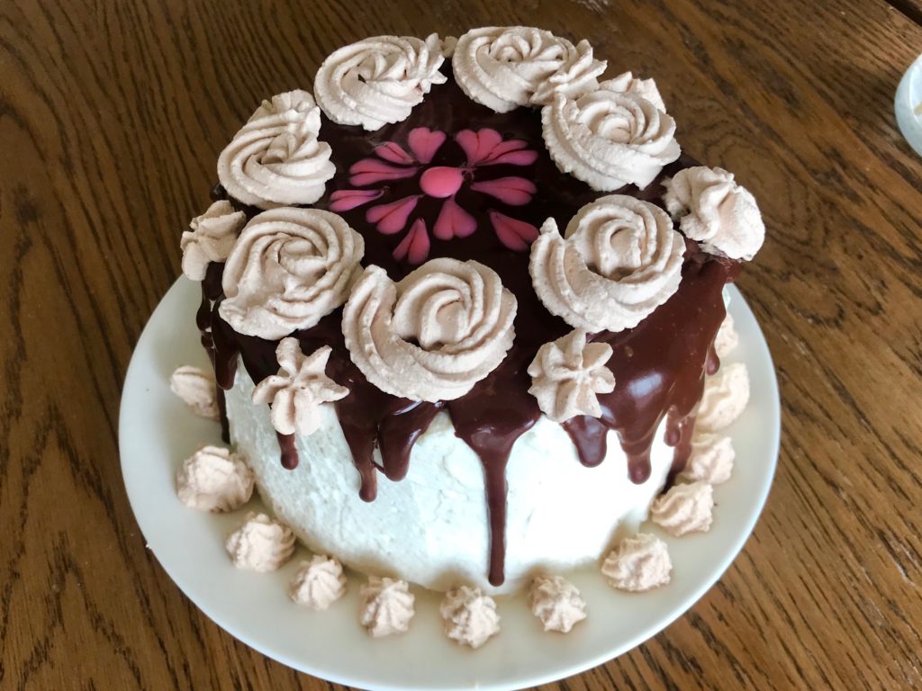 - MY MISTAKE: pour all dark chocolate drip on top of cake right away instead of using spoons, leading to two mistakes: