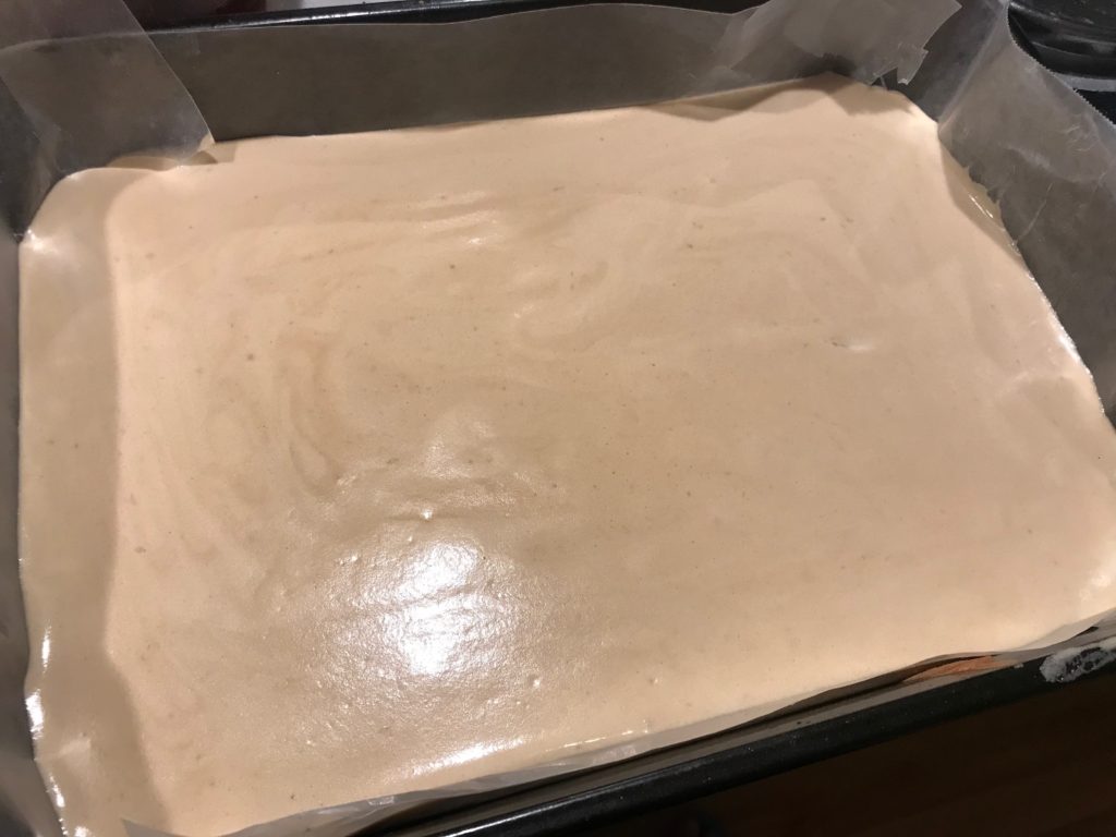 • Step 1: Pour in taro mousse mixture, drop to get rid of big bubbles.