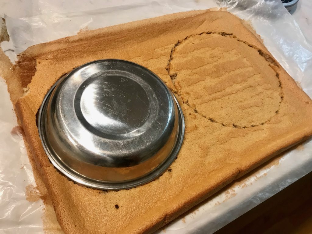 • Step 11: Cut cake into 2 circular pieces, diameter should be 1-2cm smaller than cake mold;s so mousse can also get in the space between cake edge and cake mold.