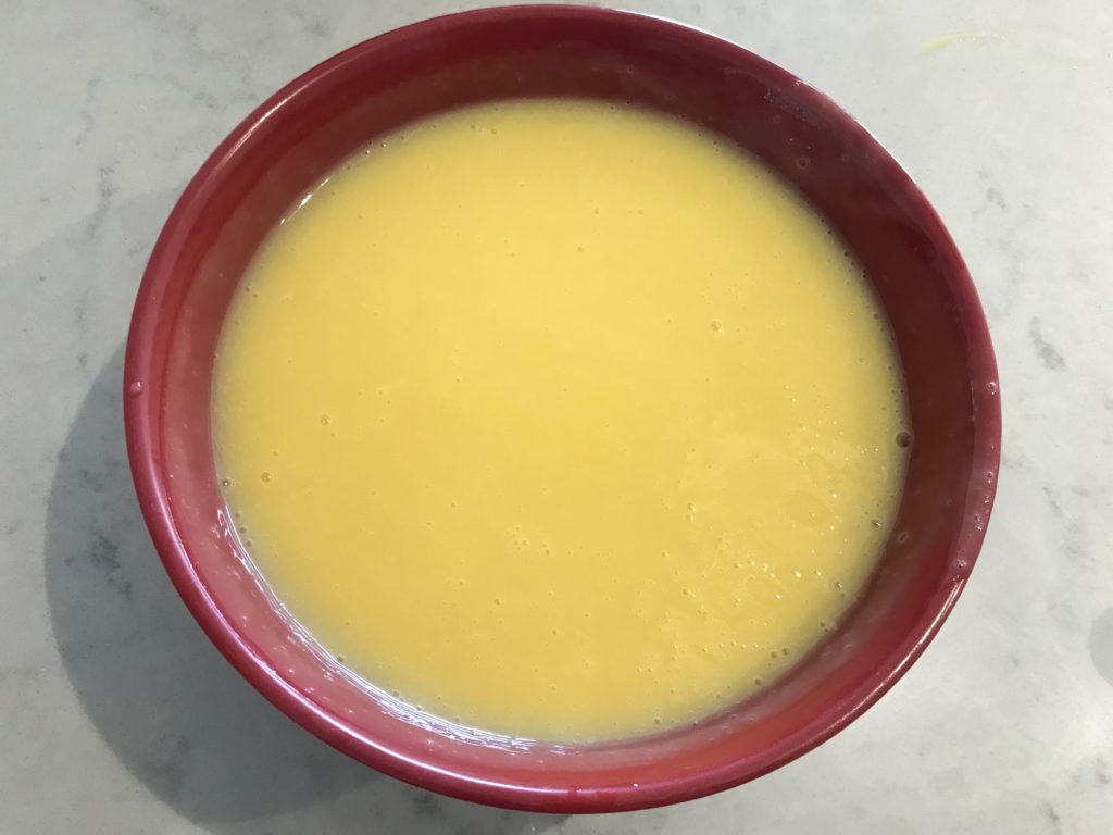 • Step 4: Transfer cake mixture to fridge while whisking egg white, preheat oven to 320F/180C.