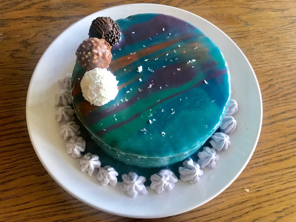 • Decorate with coconut shreds as stars and with Ferrero chocolates as planets~