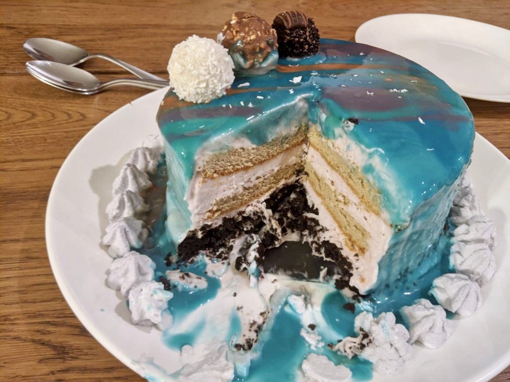 • Ferrero Chocolate had blue mirror glaze at the bottom and were at the edge of the cake. This is because: