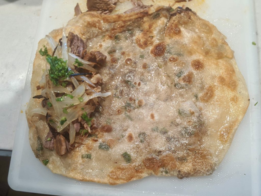 • (2) delicious and well-flavored braised beef. If you add some egg on pancake while cooking, it might taste like 煎餅果子 savory chinese crepe!