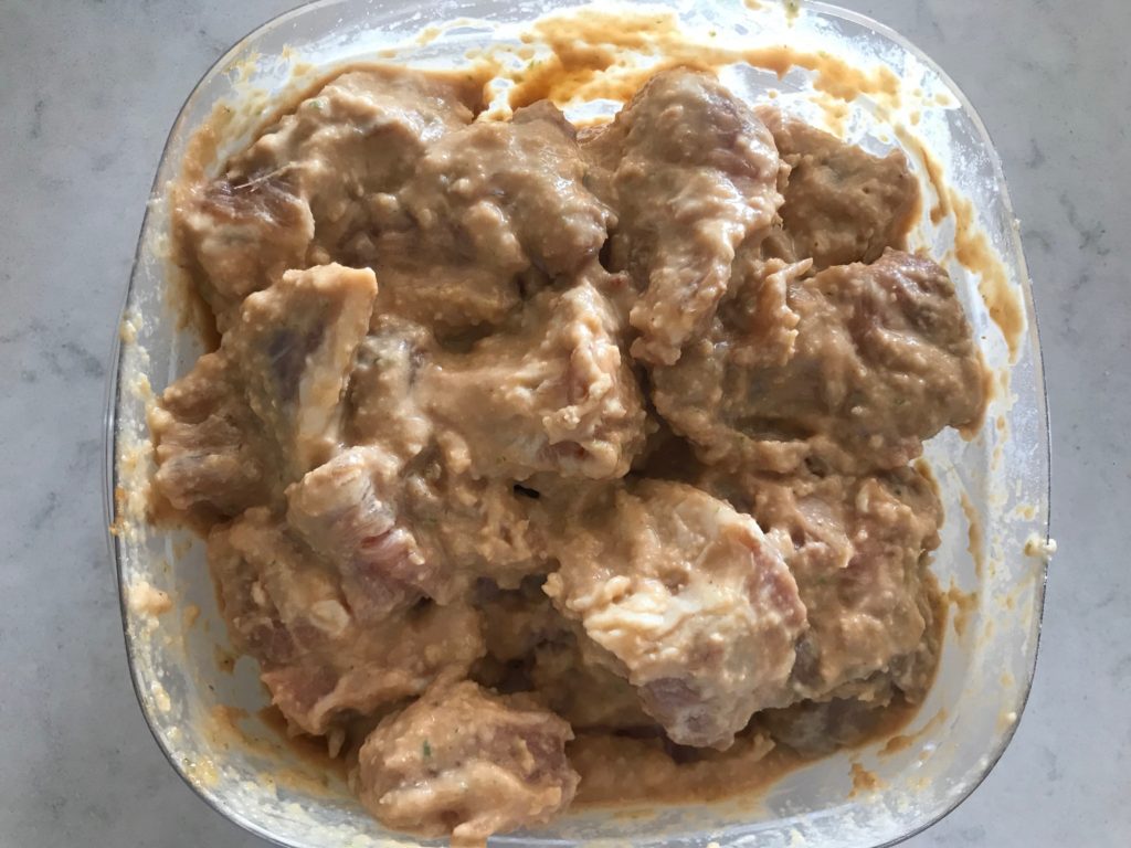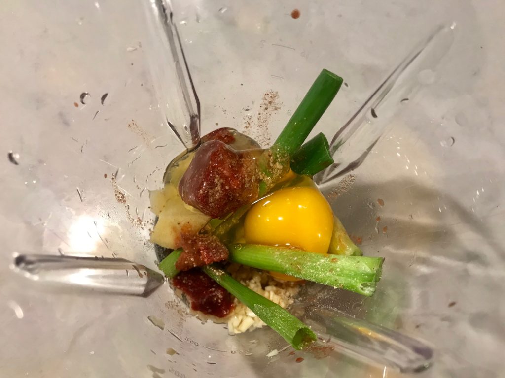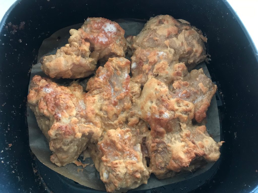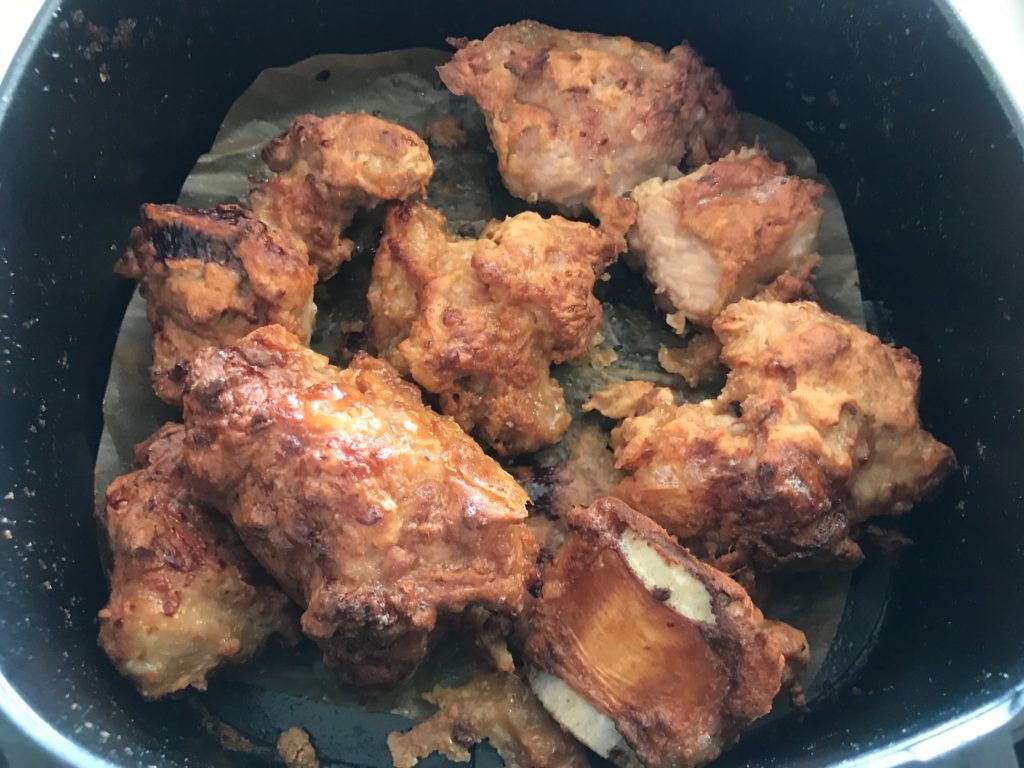 - blending garlic, ginger, green onions and fermented bean curd with WATER, AND mixing corn starch & glutinous rice flour in the mix right before air-frying, rather than coating ribs with dry corn starch & glutinous rice flour, make the marinating sauce wet enough and prevent the air-fried spare ribs from being too dry~