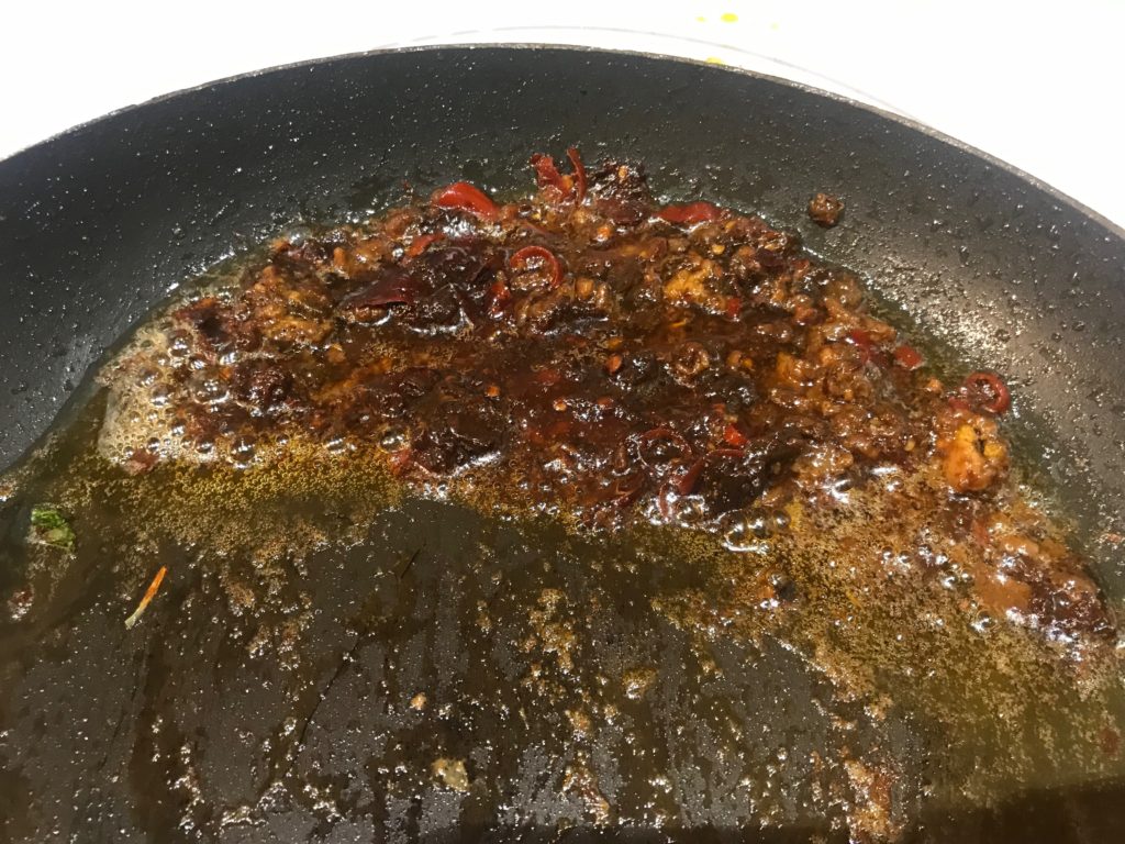 - cook bean paste in oil till red oil releases will get the taste out 炒紅油