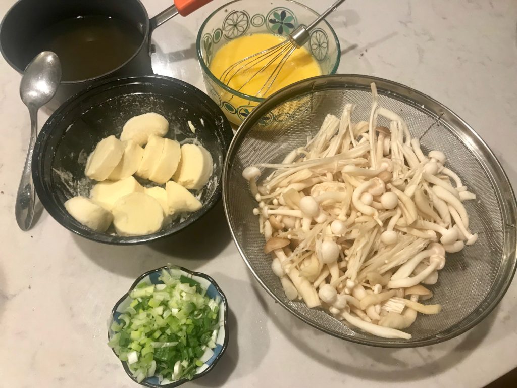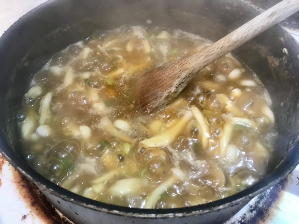 • first fry mushroom to get rid of water, then boil in dashi soup for 8-10mins for full fragrance in soup