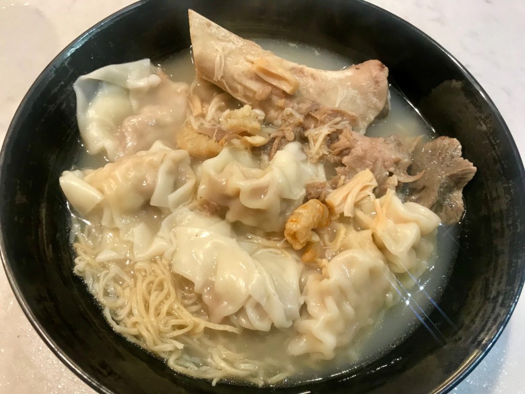 Good wonton noodle soup is hard to find, with a good combination of shrimp wonton, pork bone broth and chewy jook-sing noodle 竹升面. The best wonton noodle soup in memory was still the one of a small shop beneath bridge near home. Either in steaming, humid hot summer or chilly, cold winter, sitting on small standing stools with red paddings, rubbing neighbors’ shoulders in the crowded restaurants and having one bowl of wonton noodle soup with my parents will always chill the summer nights, brighten the winter darkness. Wonton noodle soup is another taste of home for me.
