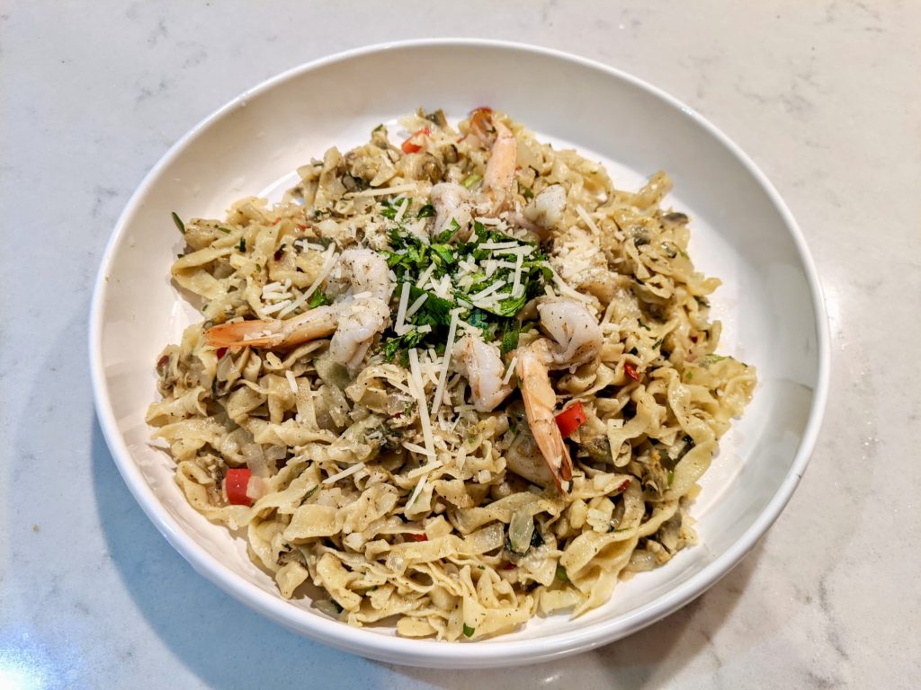 Since supermarket’s pasta has been out of stock for almost a month (March 2020), I finally got to try making pasta from just flour (~2 1/2 cup) and egg (x 4) for 4 portions, following ๅฐ้ซๅง็Magic Ingredients!
