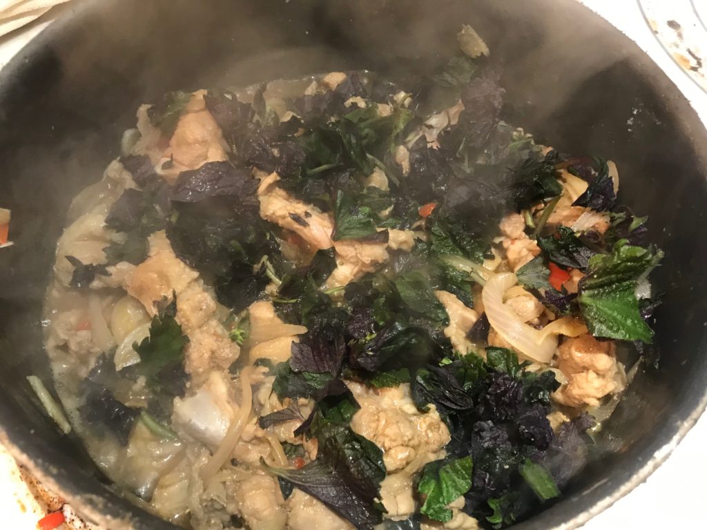 Step 5: let it cook for 3-5mins (lid open if too much liquid, close lid if not much liquid), at the end, add the rest 1/2 shiso leaves.
