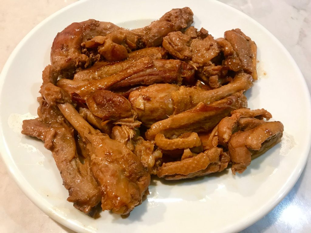 The leftover half duck from previous post “Shiso braised Duck” was made into Cantonese Five-Flavor Duck. Five flavors are: fragrant, spicy, sweet, sour, umami 香、辣、甜、酸、鮮. Five-flavor duck recipe is very straightforward — mix sauce, stir fry duck till skin becomes golden, cook for long time over low heat.