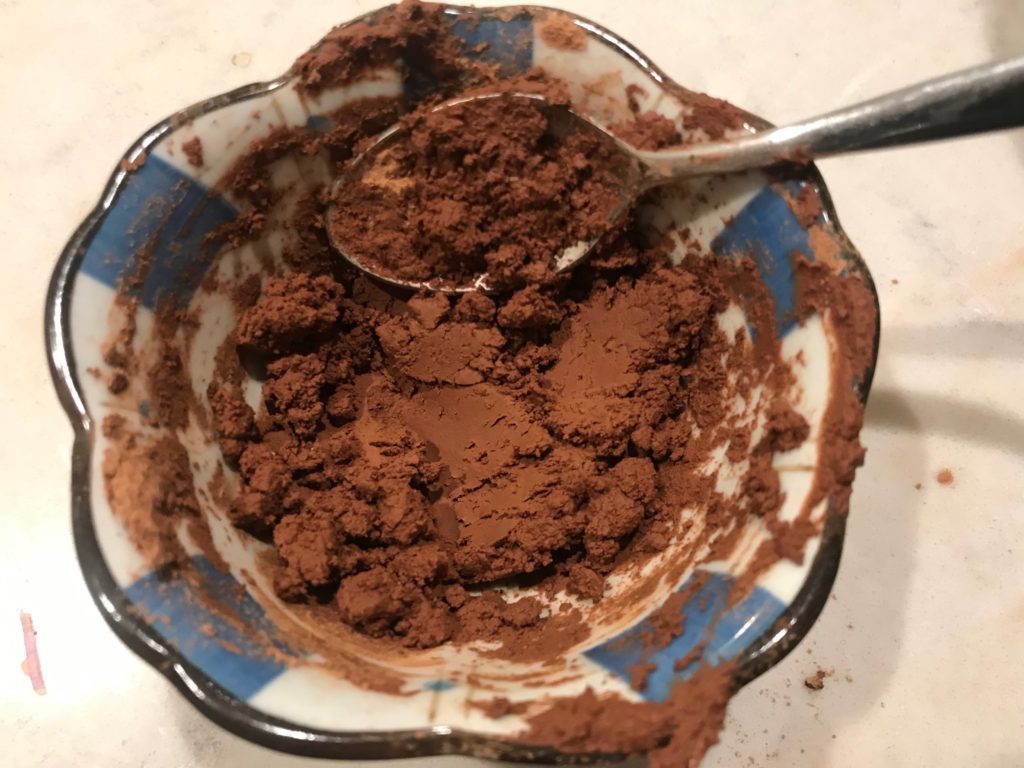 Step 5: mix 2-3tbsp of cocoa powder and 1-2tbsp of water or MORE, till it becomes cocoa paste.