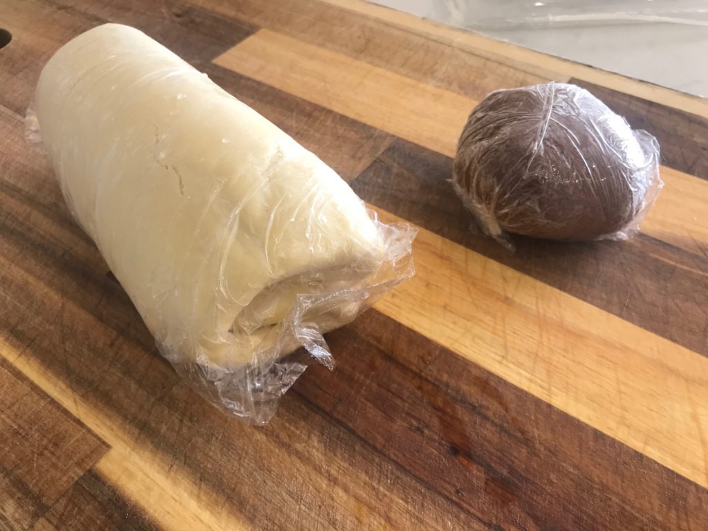 Step 6: mix chocolate paste with the separated 1/4 dough, mix well. If too dry, add more water or butter till soft. Also wrap well and store in fridge overnight.