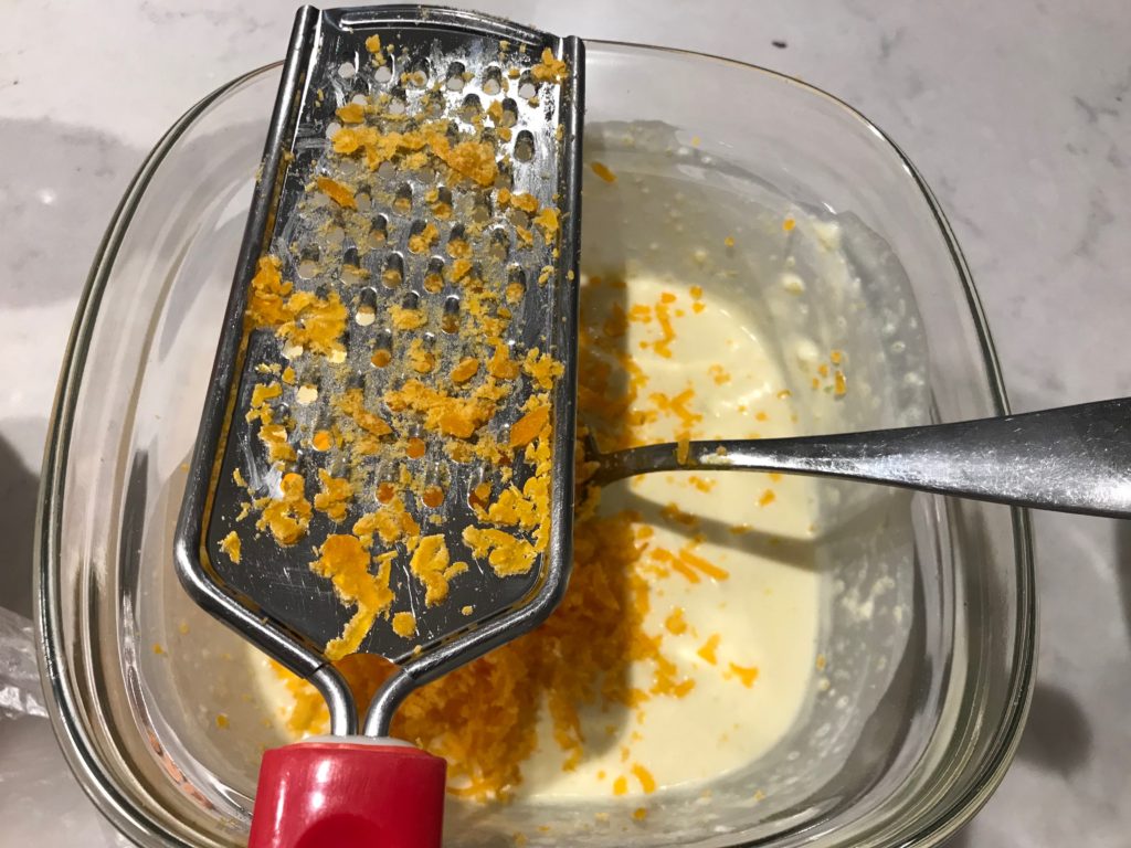 Step 4: (SKIP if you added in cake mix) grind/cut 1-2 salted egg yolk into small pieces. I used cheese grinder to grind up cooked, store-bought salted egg yolk.