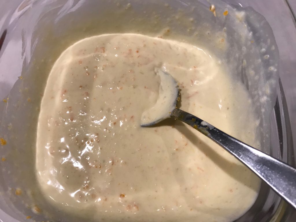 Step 2: mix the following ingredients in order with stand/hand mixer in LOW speed, or you can manual mix with spatula, use food processor/blender, but do not bring in too much bubble otherwise the cake will by light and airy: