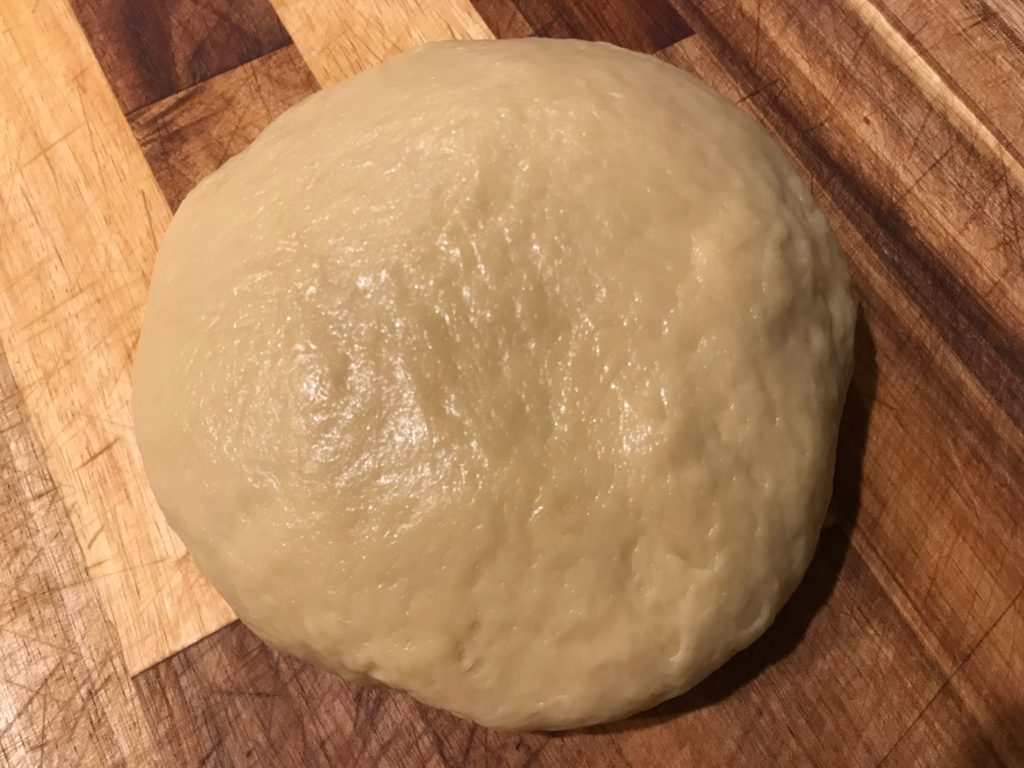 Step 3: if you do NOT have a stand mixer, knead for 10-15mins; if you DO have a stand mixer, low speed for 2-3mins, mid speed for 5-10mins; remove dough to a board, stretch out and roll back, helping gluten strands to line up