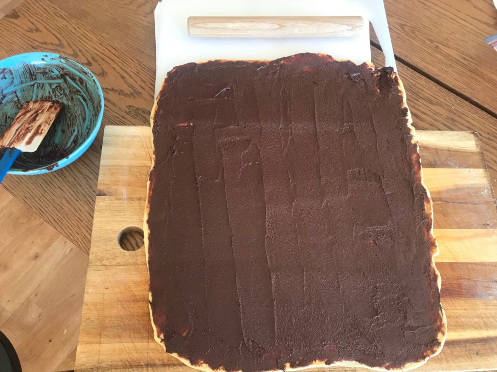 Step 3: spread filling EVENLY, very balanced on babka sheet
