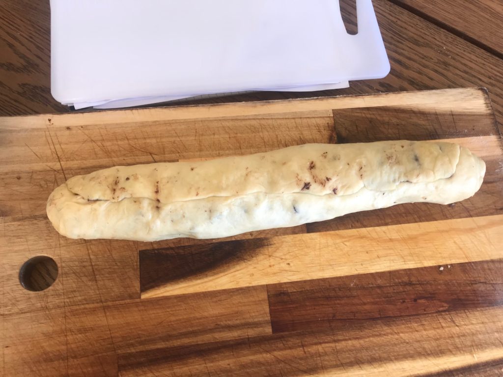 Step 6: slice through the cylinder shape dough into two halves. Braid them for as many roll as possible without over-tightening it