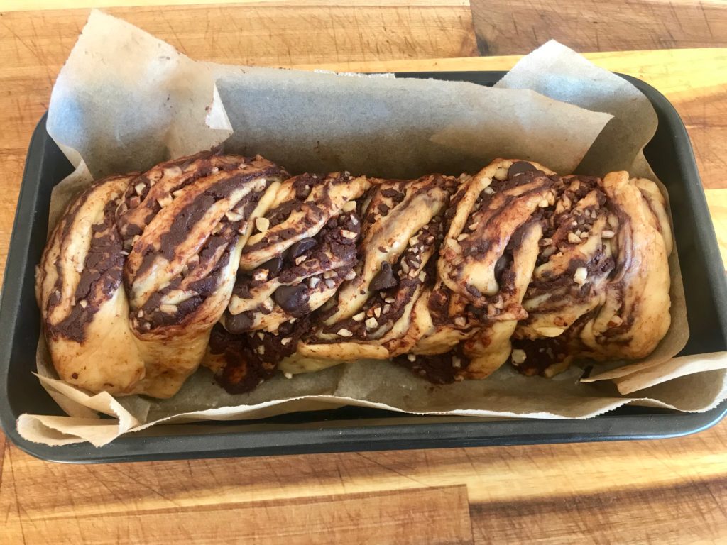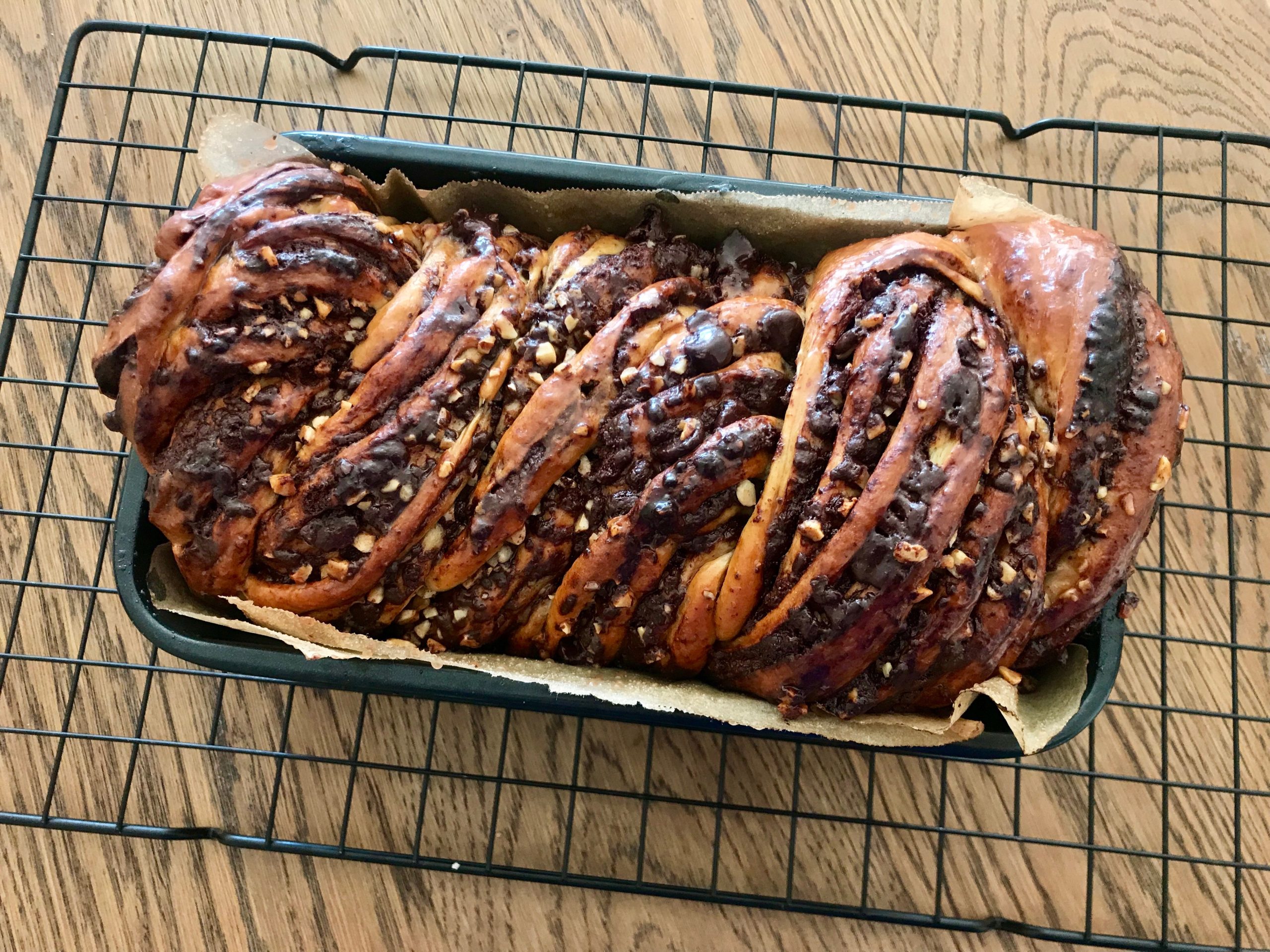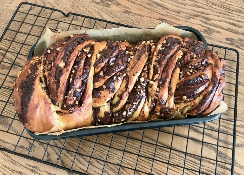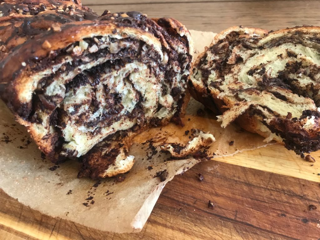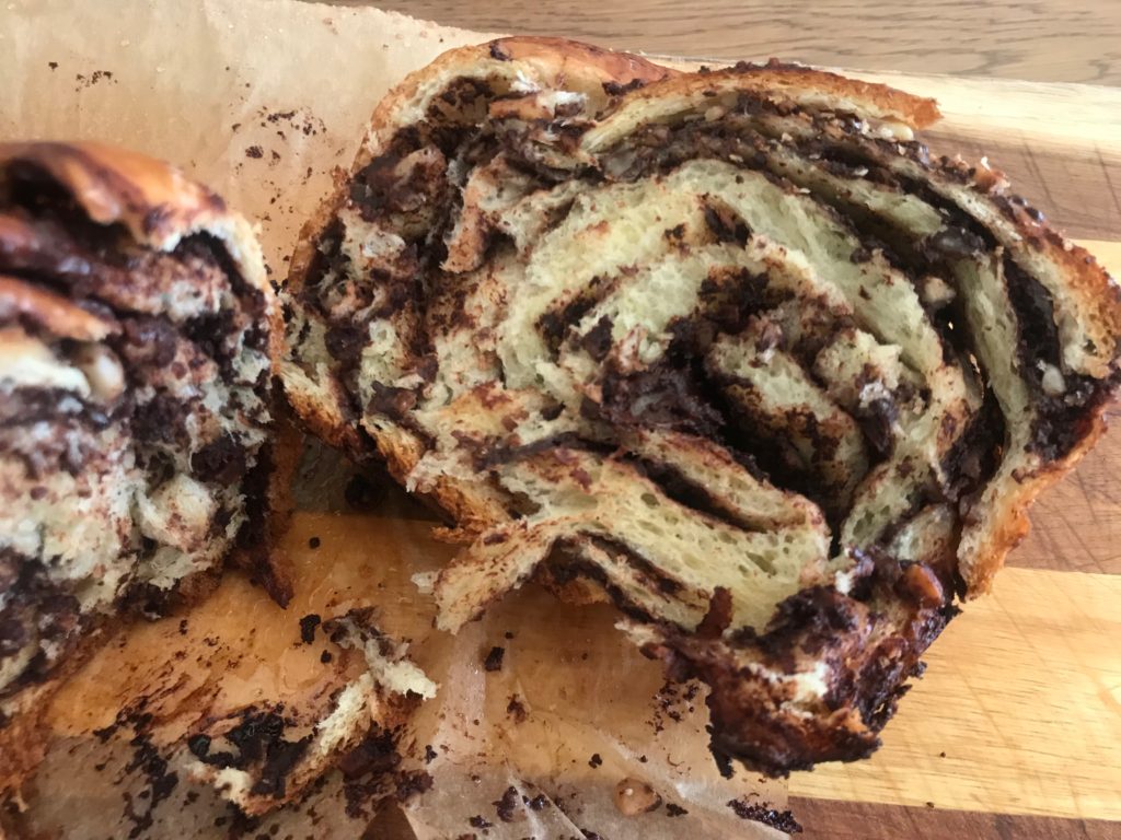 - brushing simple syrup on babka not only gives a glaze, but also engulfs the moist in the babka (I think this can be substitute with dilute honey in water, room temperature which I used to brush croissants)