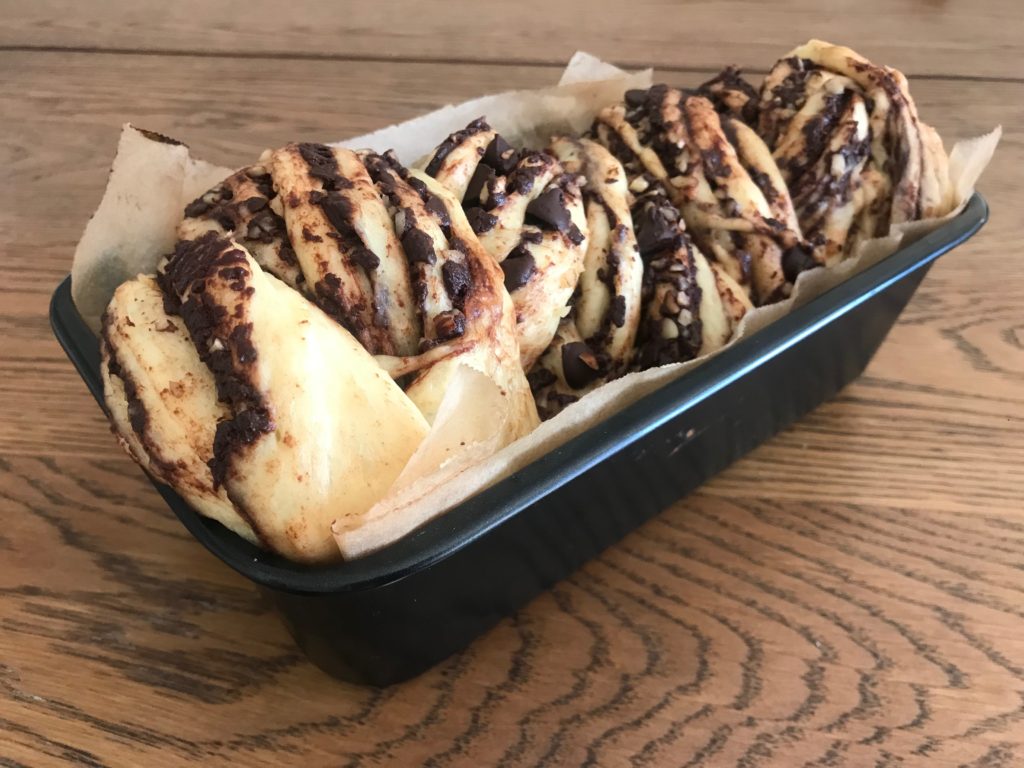- 100g dark chocolate chips –> 90g next time, overpowering bread?