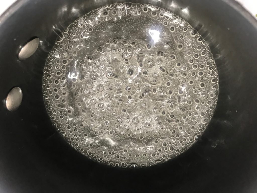 Step 11: make simple syrup with 40g sugar and 30g water over medium-high heat, wait for sugar to dissolve, and syrup to simmer for 2mins. Remove from the heat, set aside to cool