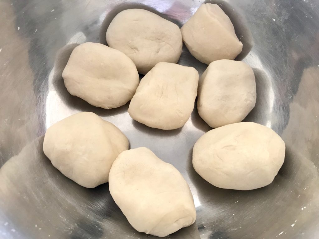Step 3: Divide into 6 – 8 small balls, knead each till smooth, rest 10mins