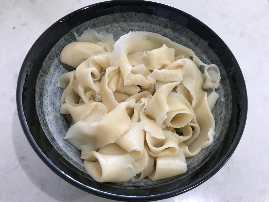 - do not cook everything at once, maybe noodle from 2 small dough at once, otherwise noodle will stick together