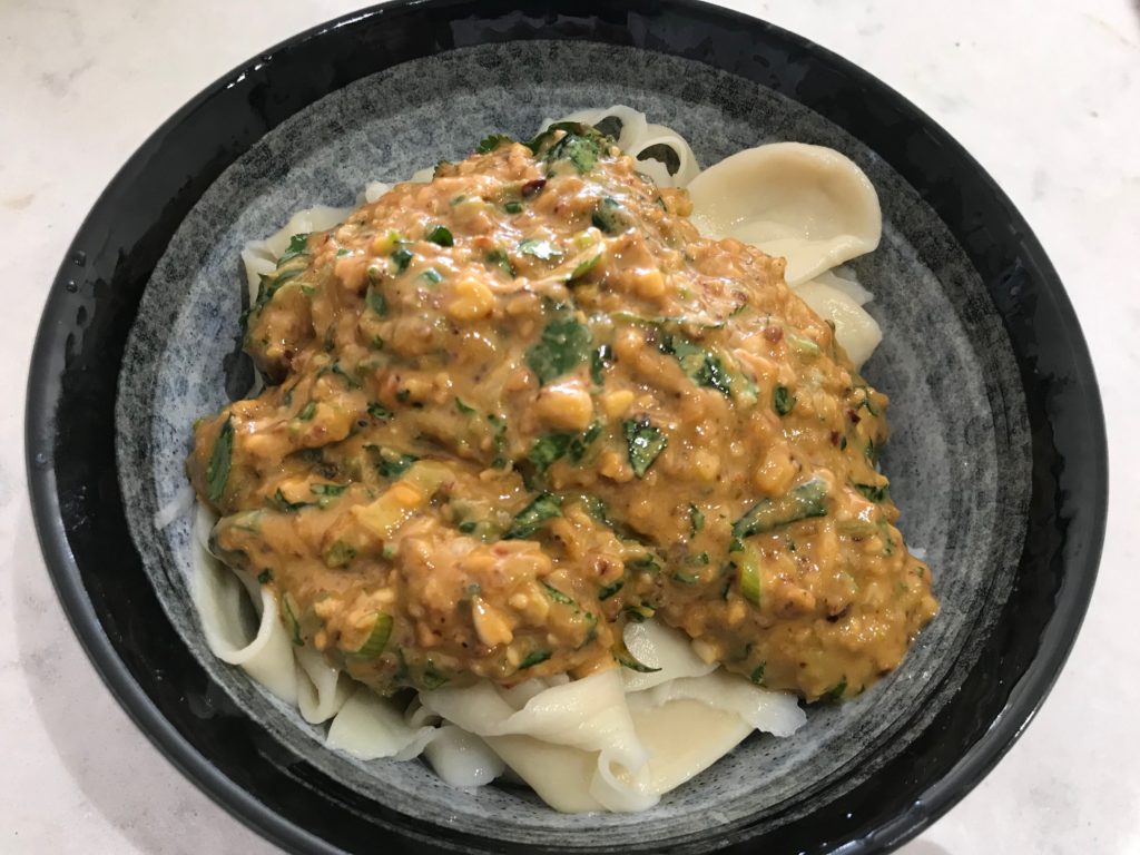 I have friends who really like a Sesame Spicy Noodle from a Szechuan restaurant in San Francisco, which is especially flavorful a LOT of sesame paste, at the same time SUPER spicy with excessive chili flakes! To replicate it at home, I tried to make Spicy Sesame Noodles with Tahini and hand-pulled noodles, of course any noodle will do!
