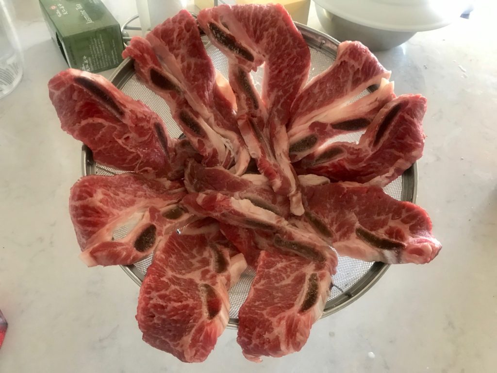 - washing off broken bones, getting rid of blood and drying beef short ribs before marinating is very important! Best help absorbing the most sauce!