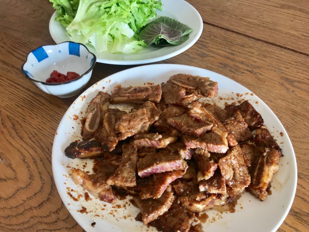Craving for Korean BBQ after not having it for more than 1 year in pandemic and celebrating a friend receiving multiple offers, we decided to have KBBQ AT HOME!! One must-have ingredient besides pork belly, bulgogi is beef short ribs (LA Galbi)!! Its slight sweetness is the key of sauce, following Maangchi’s recipe, I was able to replicate the sweetness, softness of LA Galbi!!