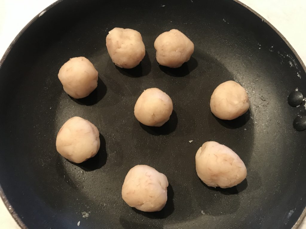 • not wrap around salted egg yolk fillings right away because taro fillings are warm and might melt butter in salted egg yolk