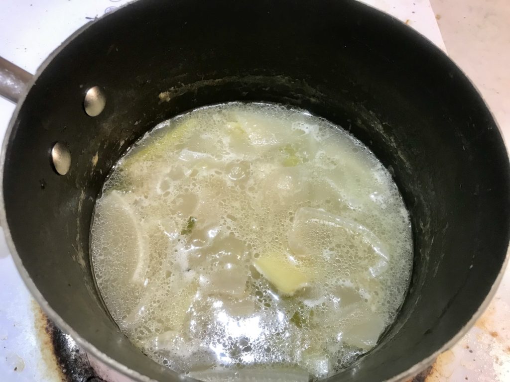 - Step 4: filter out pork skin, scallions, gingers and save the rest of liquid in a container; rest in fridge overnight for them to become jelly.
