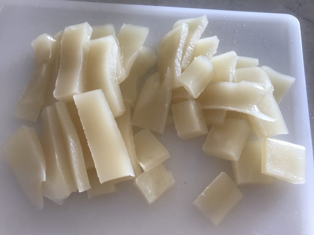 - Step 5: next day, cut jelly into small pieces, as small as possible and will mix in with meat fillings.
