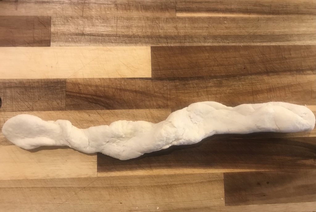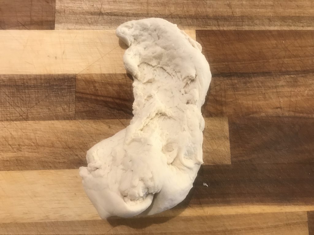 - Step 2: move dough to a cutting board, start kneading dough for 10-15mins. Stretch it out, roll it back, and repeat; till the dough surface is smooth.
