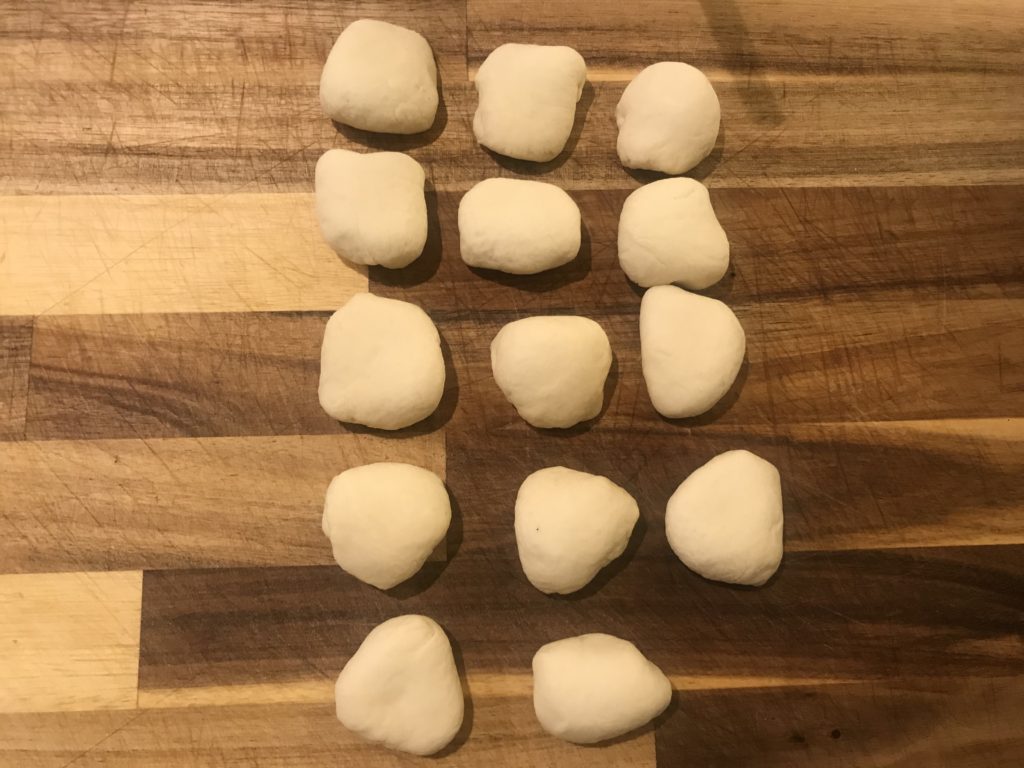 - Step 5: divide dough into small balls, around15-20g per potion. Pour some oil on dough to cover them, so they are sealed and would not dry out easily.