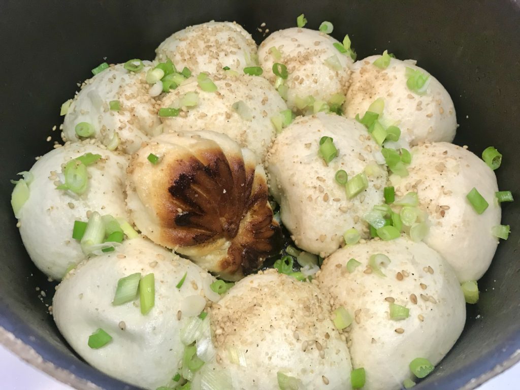 - cook at high heat the whole time! Oil and water pan-fried will make the mantou/bun semi-risen while cooking, achieving a unique texture in between super soft and fluffy baozi and chewy soup dumpling texture.