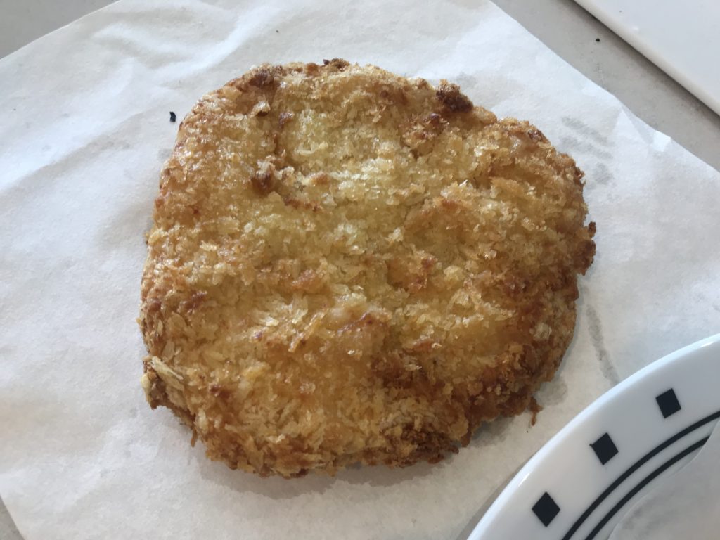 - Step 0: remove shrimp patty from freezer so the temperature comes up a bit before deep-frying/air-frying.