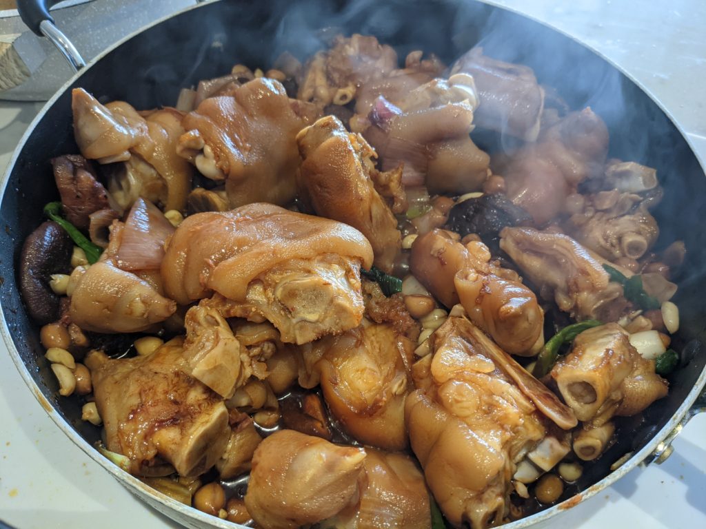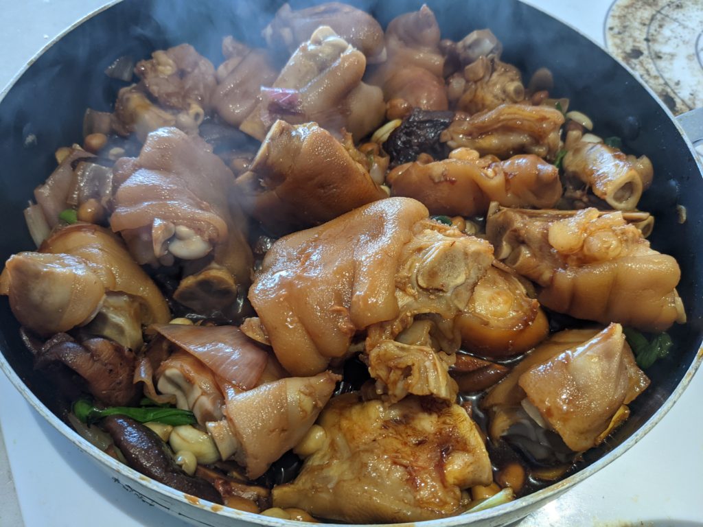 - after adding in original sauce and water to cover pork feet, taste the soup; it should be on the less salty end as water evaporates and will increase saltiness.