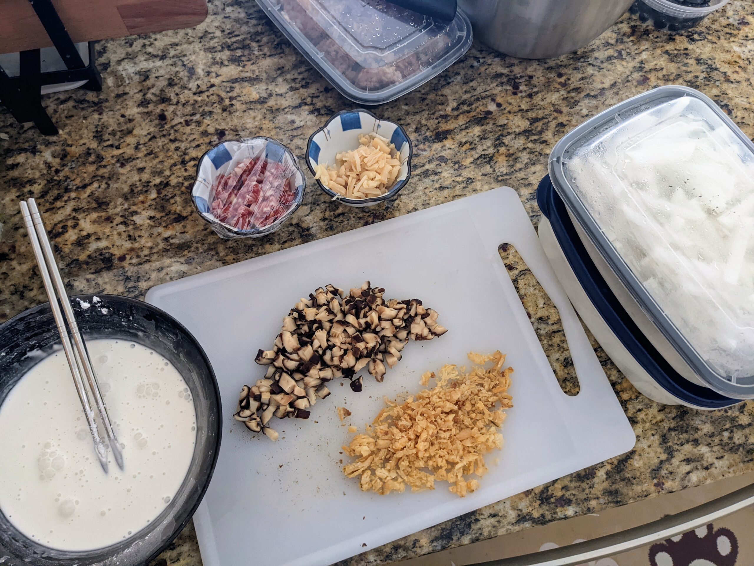 Store-bought turnip cake is usually too “starchy”, “floury” or does not have enough flavor/umami, so I decided to make it myself. Surprisingly it tastes really good and process is not too complicated either, just a lot of chopping.