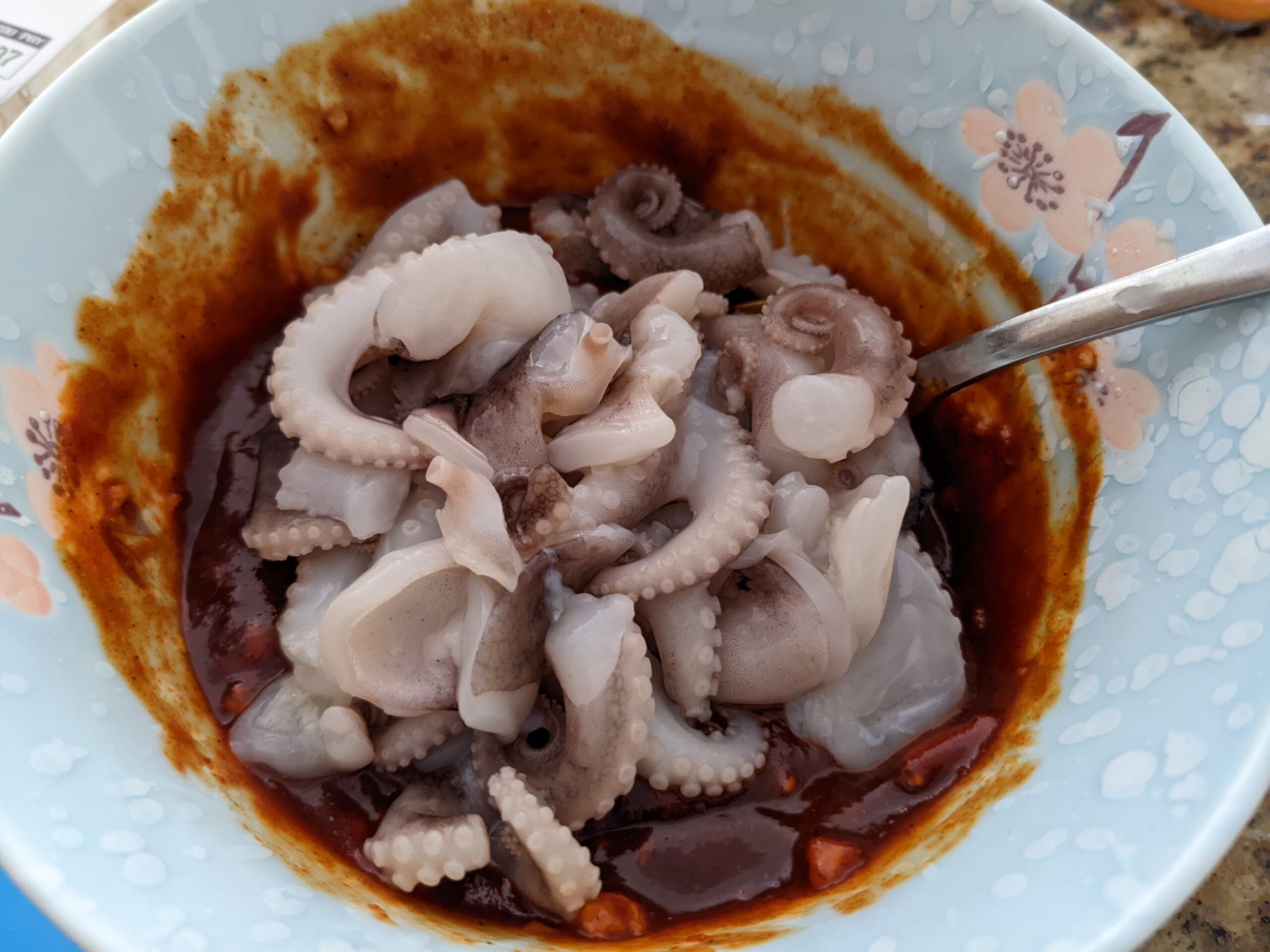 STEP 4: cut octopus into smaller bite size, then put in sauce to marinate for at least 30mins